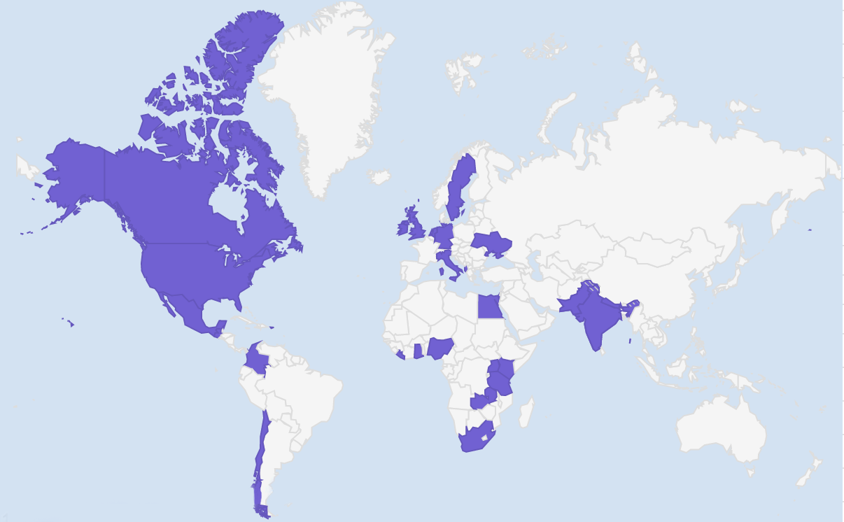 The organisations are all small and medium-sized nonprofits on GlobalGiving’s platform. They come from 22 countries (see map below) and right across the spectrum of cause areas – from Health to Climate Change, Democracy and Governance, Economic Development, Education, Women and Girls, and more.