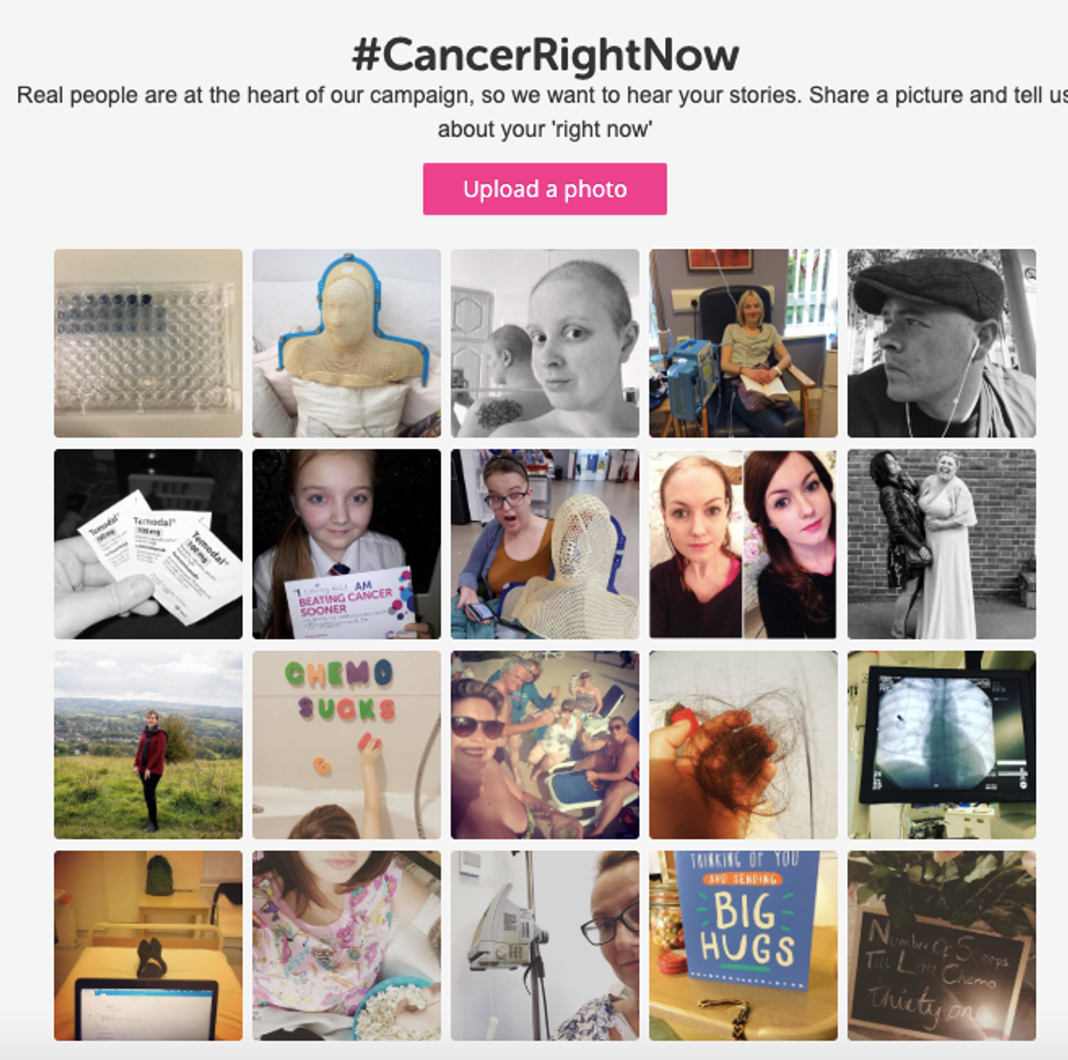 Cancer Research UK’s campaign Cancer Right Now is the perfect example of how to harness your community to put stories at the heart of your campaign. Cancer Right Now launched with documentary-style films sharing what cancer meant ‘right now’ for different people. The campaign centres around stories and calls for people to share a photo and message that illustrates their cancer journey – “Real people are at the heart of our campaign, so we want to hear your stories…”.