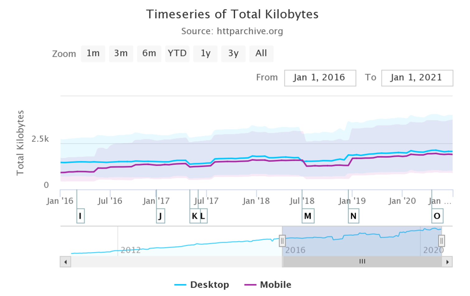 Meanwhile, the websites being built are becoming larger and less efficient. Over the last 5 years, the median web page size has grown by 40.7% on desktop and 107.6% on mobile.