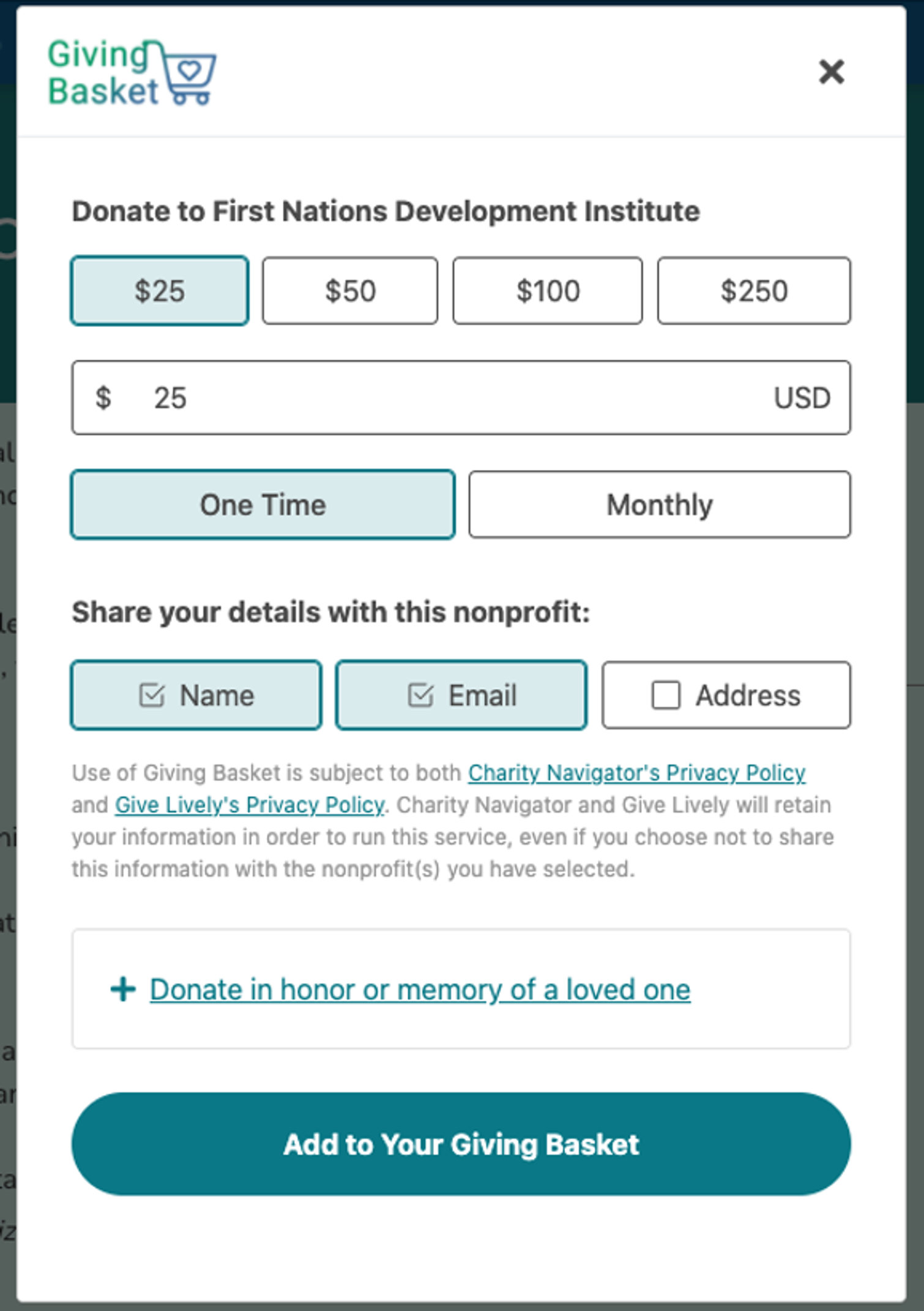 The donation form for the First Nations Development Institute makes the distinction very clear.