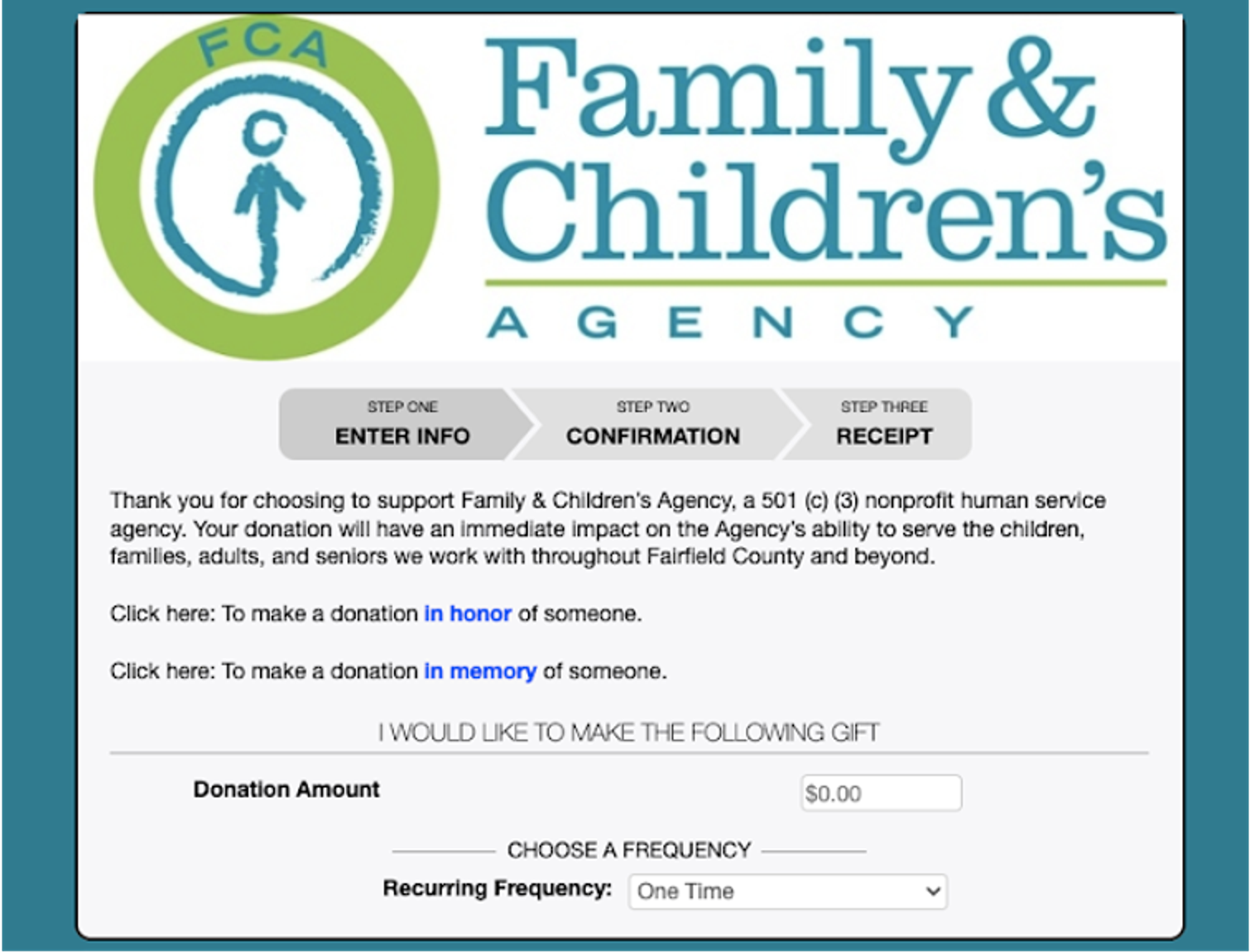 The Family & Children's Agency does a good job of this by highlight the three stages of their process, right from the start.