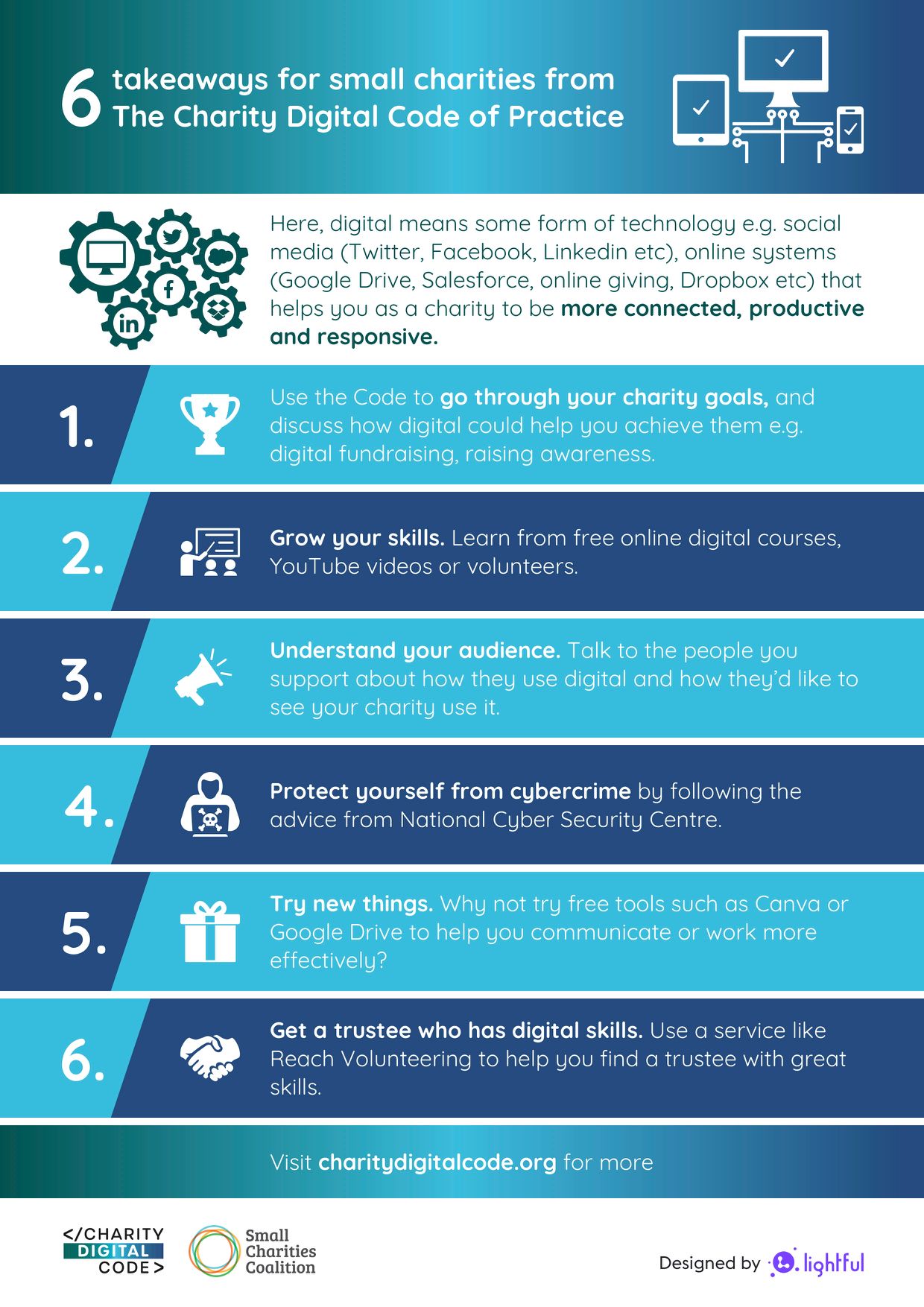 - Talk about it at your next meeting. The Code’s been designed so you can work through it as a tool to help understand where you are at, what is going well and how you could use digital better. Why not use it to start a conversation? In my experience, once you start talking about digital there will be people in the room who have brilliant ideas but have always been nervous about voicing them. The Code will help them feel comfortable to share their ideas.