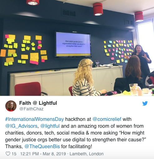 The 8th of March marks International Women’s Day, which was celebrated around the world in a number of different ways. Lightful, along with Comic Relief, IG Advisors, and Social Misfits Media hosted a Hackathon for women in the third sector.