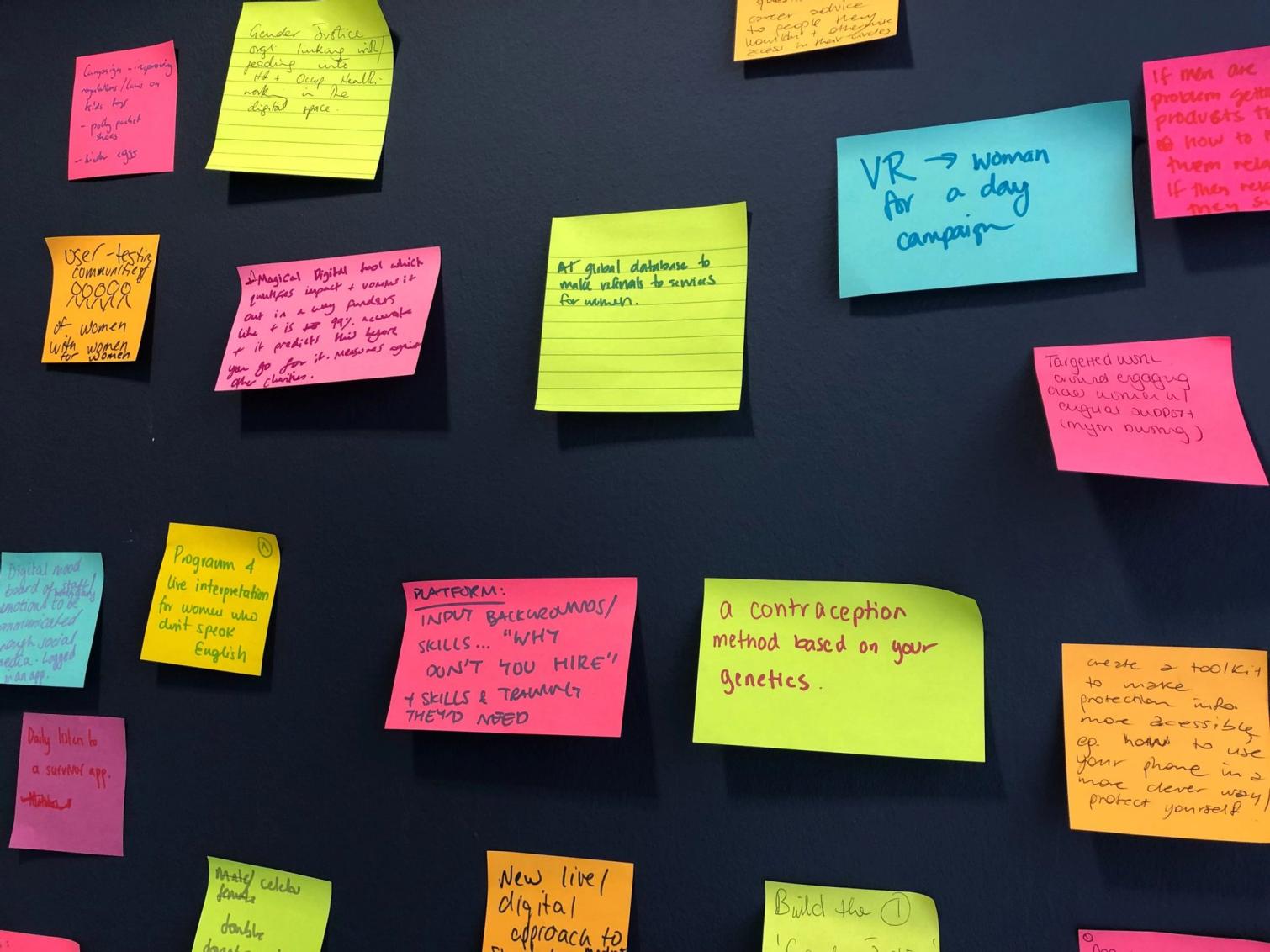 Each individual was then asked to quickly write down as many ideas as possible for an app or platform or campaign that would help to answer the question. Everyone in the room felt excited and empowered to be able to put their ideas forward, meaning that we had over 50 ideas that could all be created and released with the right support.
