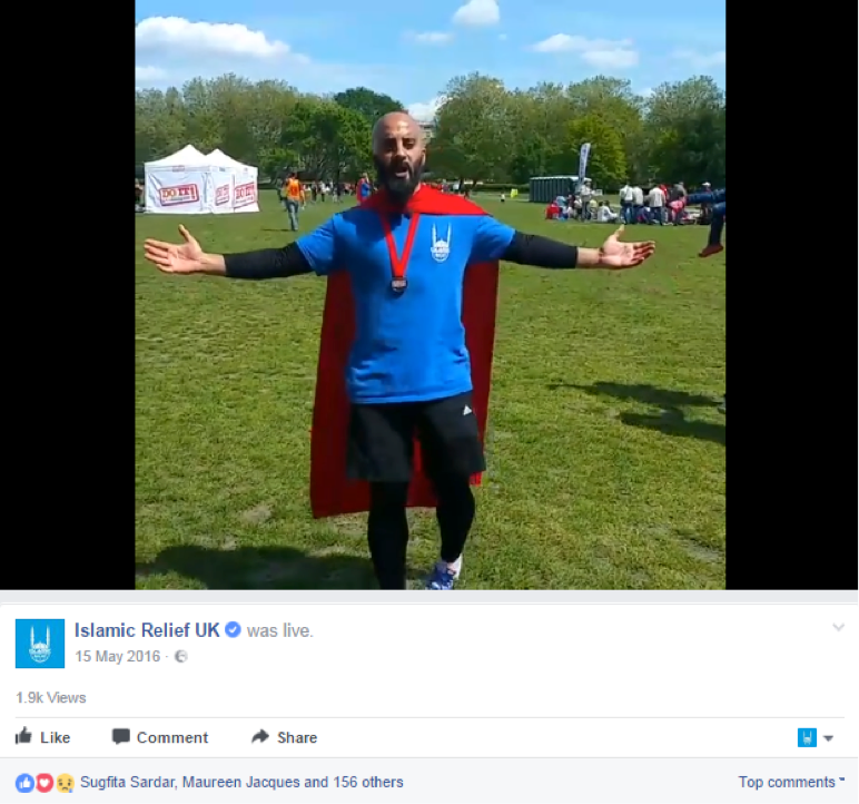 We’ve used the Facebook Live feature to show the human side to our organisation. For example, when Islamic Relief took part in the annual Superhero Run in London Regents Park, we did a series of live videos. Our Deputy Director, who ALWAYS dresses smart, appeared in his running gear and a cape. Whilst having fun and jumping around trying to be a questionable superhero, he got across key messages on how our water projects (what participants had fundraised for) are saving lives around the world.