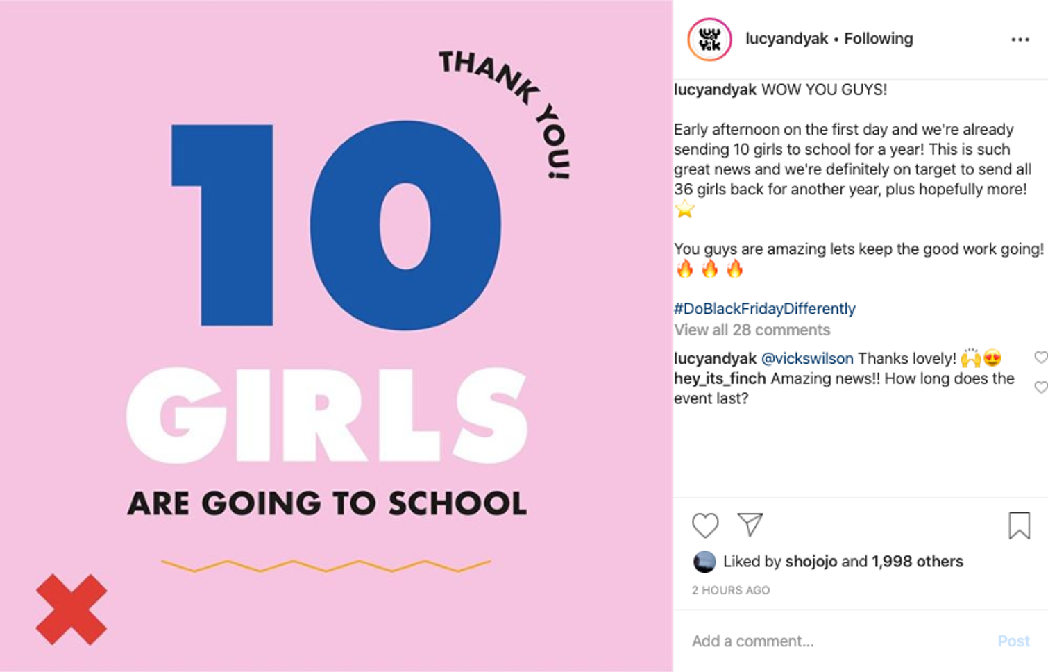 This campaign was led by #LoveOurPlanet and worked well as it taps into their conscience of what they stand for as a company. It also made people excited as they could make a purchase knowing that it was helping to make the world a better place.