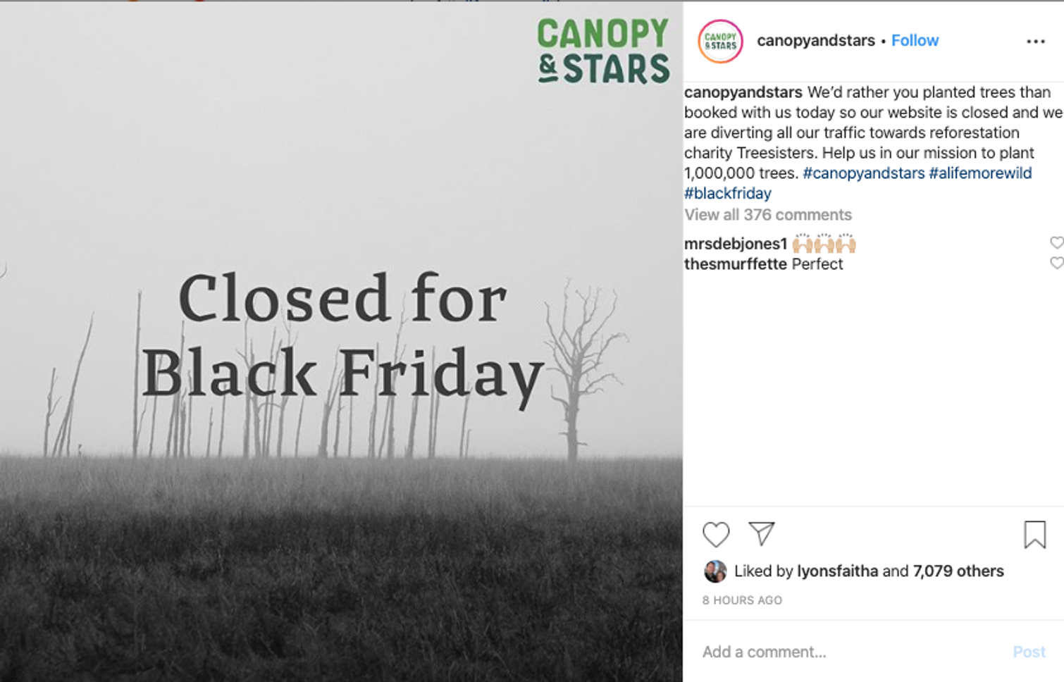 Holiday company Canopy and Stars have closed their website encouraging people to donate money to TreeSisters. Treesisters will then plant trees with the money donated over Black Friday.