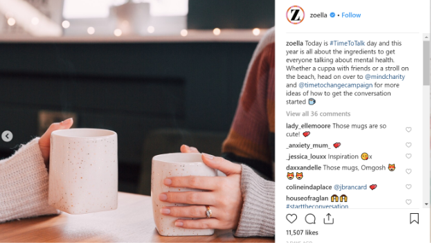 same interests as they do. Both Zoella and Fearne Cotton speak about their issues with anxiety and how it affects their mental health. In fact, Fearne has even started a podcast called Happy Place, which is focused on wellbeing and mental health – and Zoella has even been a guest on her show. They are both ambassadors for Mind, the mental health charity, so any reference to the charity sounds authentic and real. There will be lots of their followers who are struggling with mental health issues, either themselves or in their family, so Mind is able to reach them through working with influencers like Zoella and Fearne.