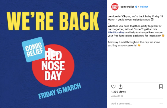 Although a household name, Comic Relief are fairly new to fundraising on Social. 2019 was the first year that social media was central to their campaign. We are going to highlight the strategies used for #RedNoseDay and how you can incorporate them into your own campaign.