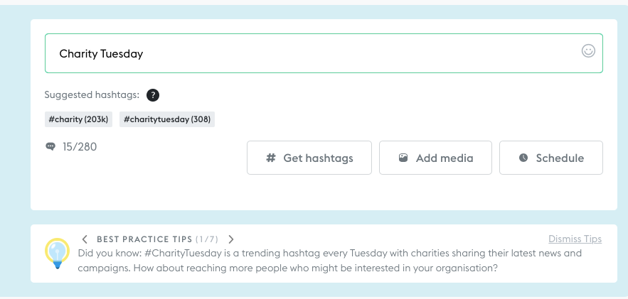 Another hashtag to keep in mind is #CharityTuesday that is trending every Tuesday. You can talk about your charity, your campaign or even your supporters and you can include the hashtag #CharityTuesday as part of it. As you can see in the numbers above, it is very popular every Tuesday and it’s a good way to be part of a relevant and popular hashtag in the charity sector.