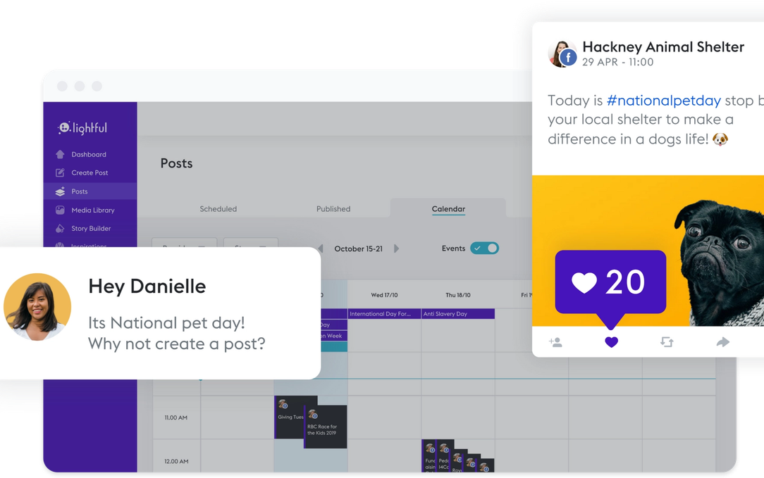 Never miss an Awareness Day and the opportunity to create conversations that matter. At Lightful, our content calendar has almost 200 sector Awareness Days built in and we’ll even remind you of upcoming ones so you can plan ahead.