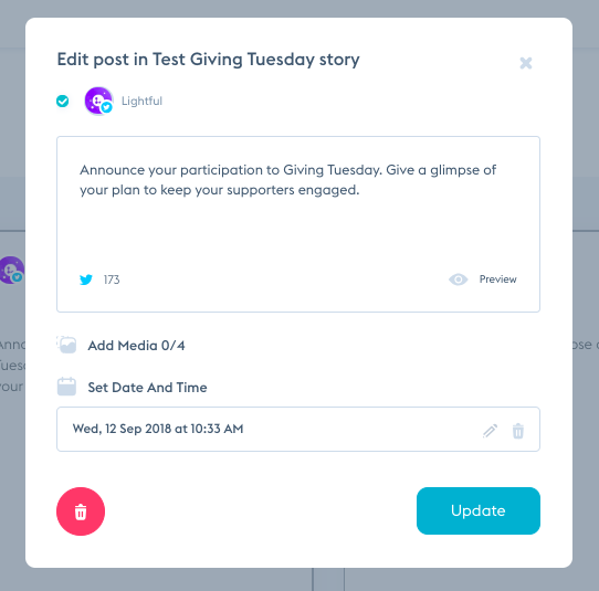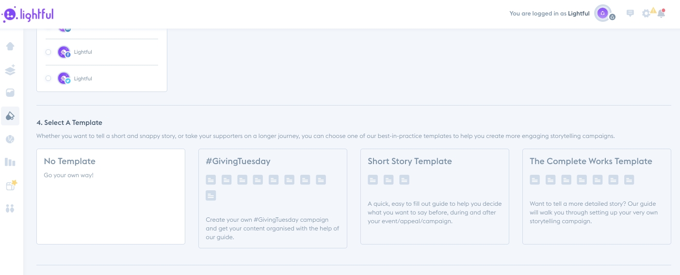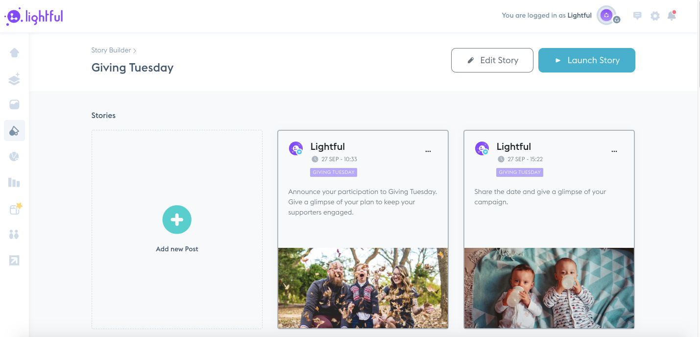 If you’re unsure where to start with the planning of your Giving Tuesday campaign, then you’ll be happy to hear that we’ve created a special template in story builder, over on the Lightful platform, to help you schedule your content.