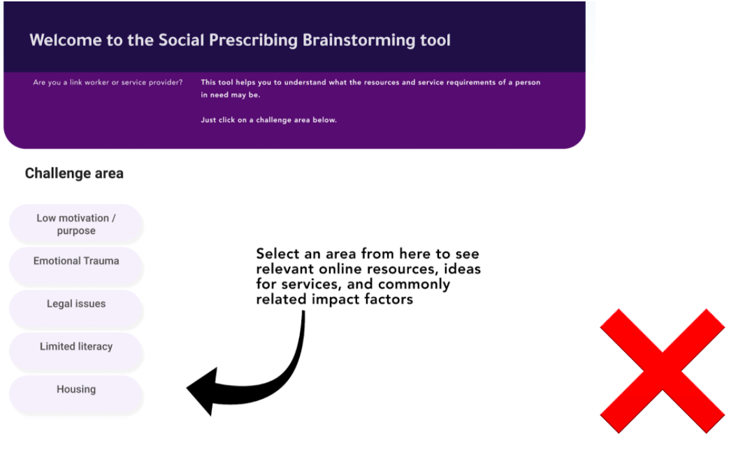 - As an output of this process, we created a persona-led social prescribing support tool that provides ideas and suggestions for link workers based on an understanding of the issues and challenges of the person who needs help. The tool we developed can be accessed here