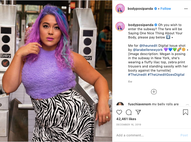 Megan is just a breath of fresh air in a society that places so much emphasis and value on the way people look. I love how she is unashamedly just herself and that she actively encourages people to love themselves as they are.
