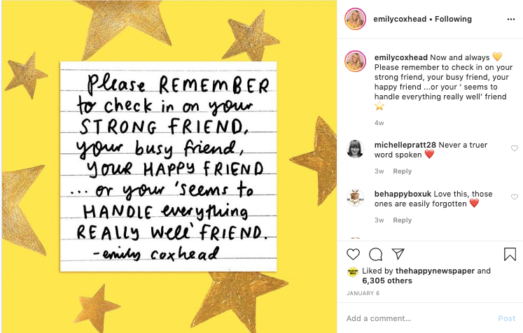 It’s inspiring how they’re using social media to change the conversation around mental health. Whether it’s through challenging taboos, practical advice on self-care or sharing online tools which help people understand their mental health better, their social media is inspiring and engaging.