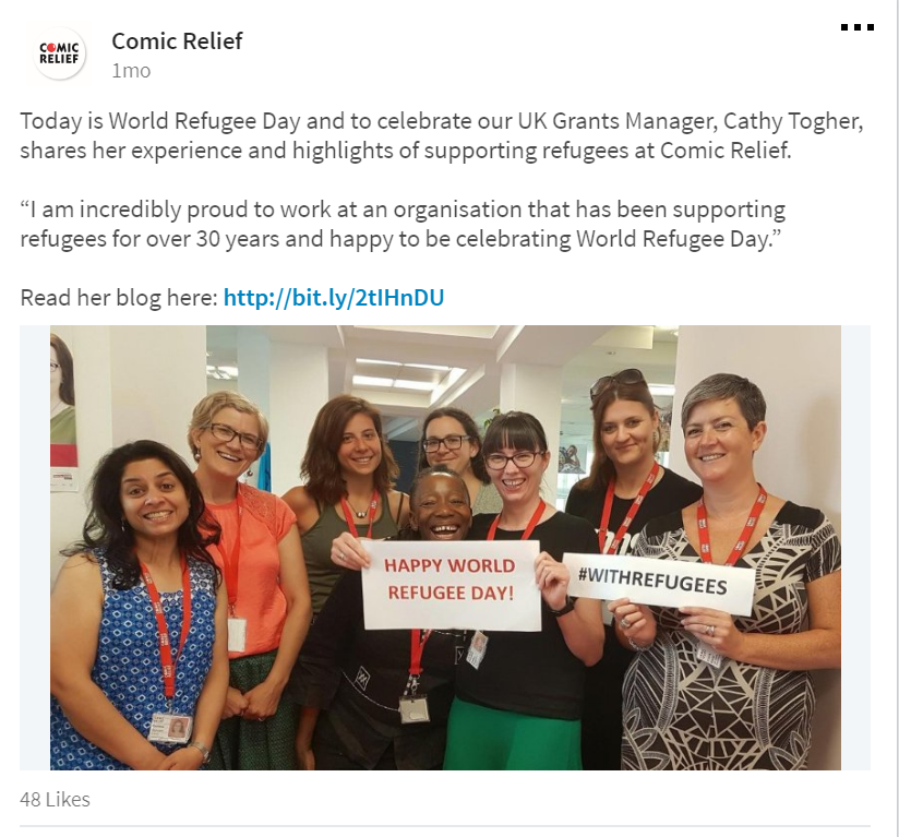 LinkedIn is great for reaching future employees, volunteers and trustees as well as corporates. It’s the perfect platform to showcase the amazing people who work for your cause, to show your culture, the impact that you make and why you would be a good fit with a corporate partner.