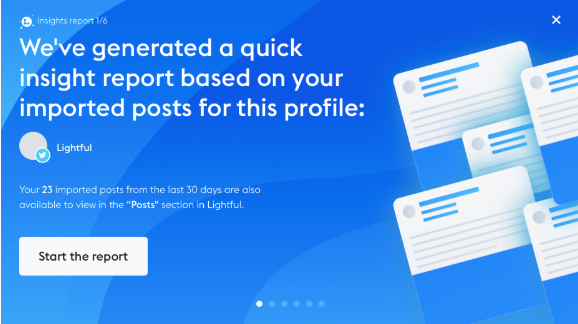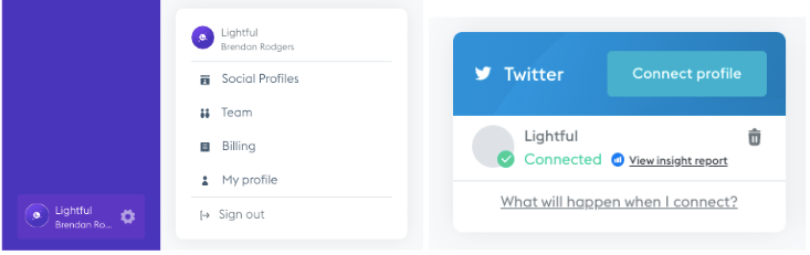 Log in to Lightful, and click your organisation name in the bottom left, and click the ‘Social Profiles’ menu. Now click the ‘View insights report’ link.