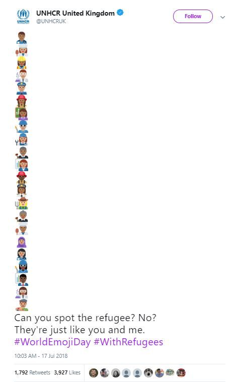 I love how both UNHCR UK and Refugee Action used emoji to highlight that refugees are people, just like you and me, and all they want is to find a home where they can live safely.