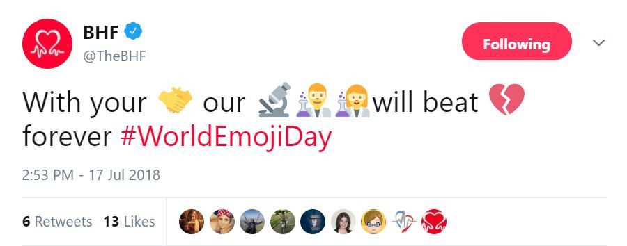 Top marks for British Heart Foundation and National Trust for these tweets, which used lots of emoji to tell a story about how people can support them and how their support matters.