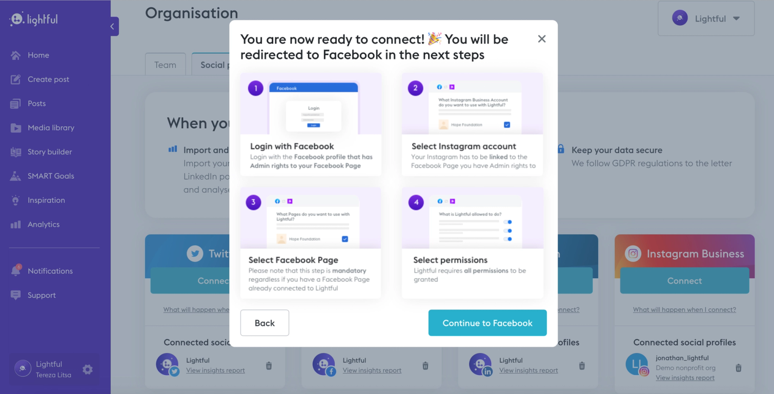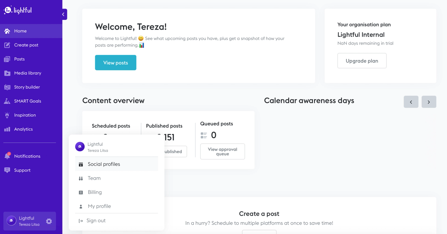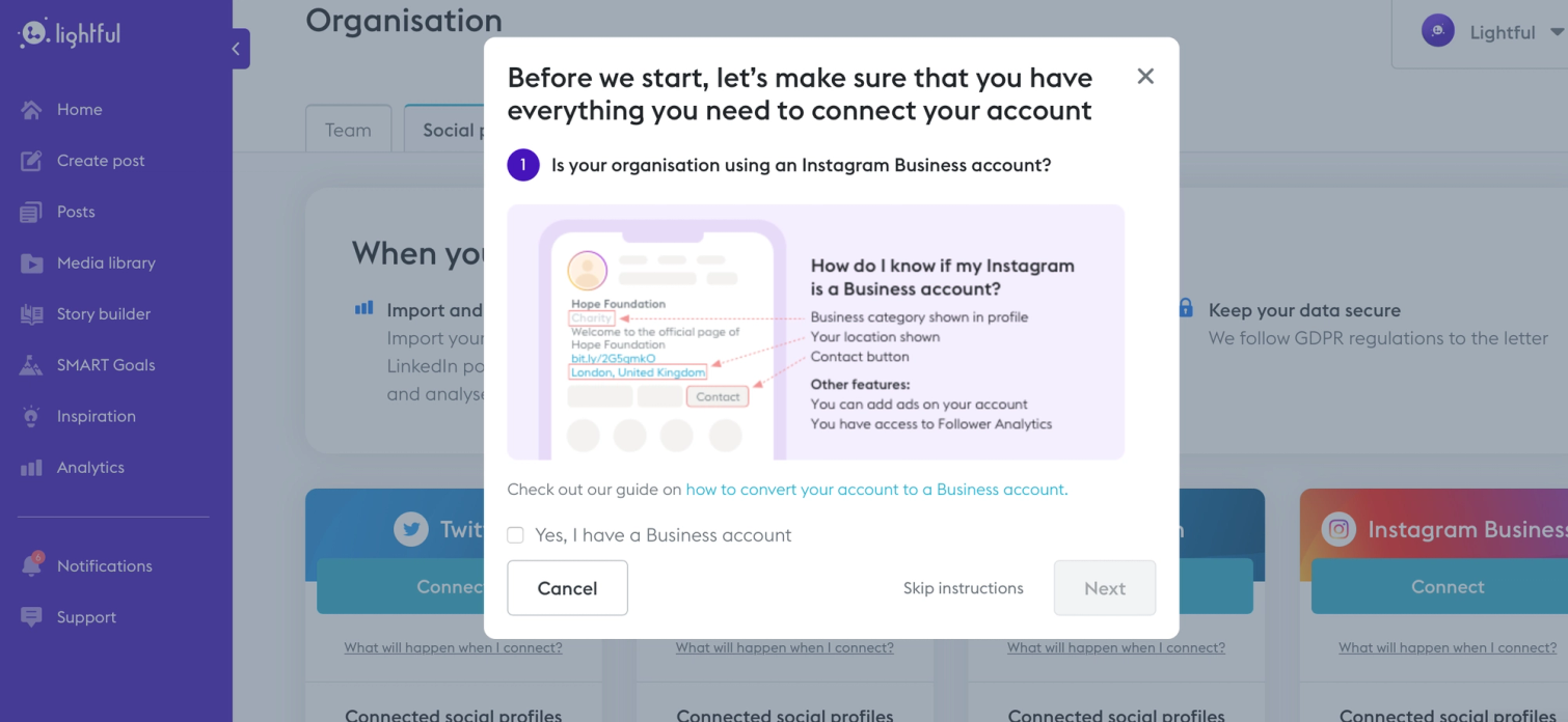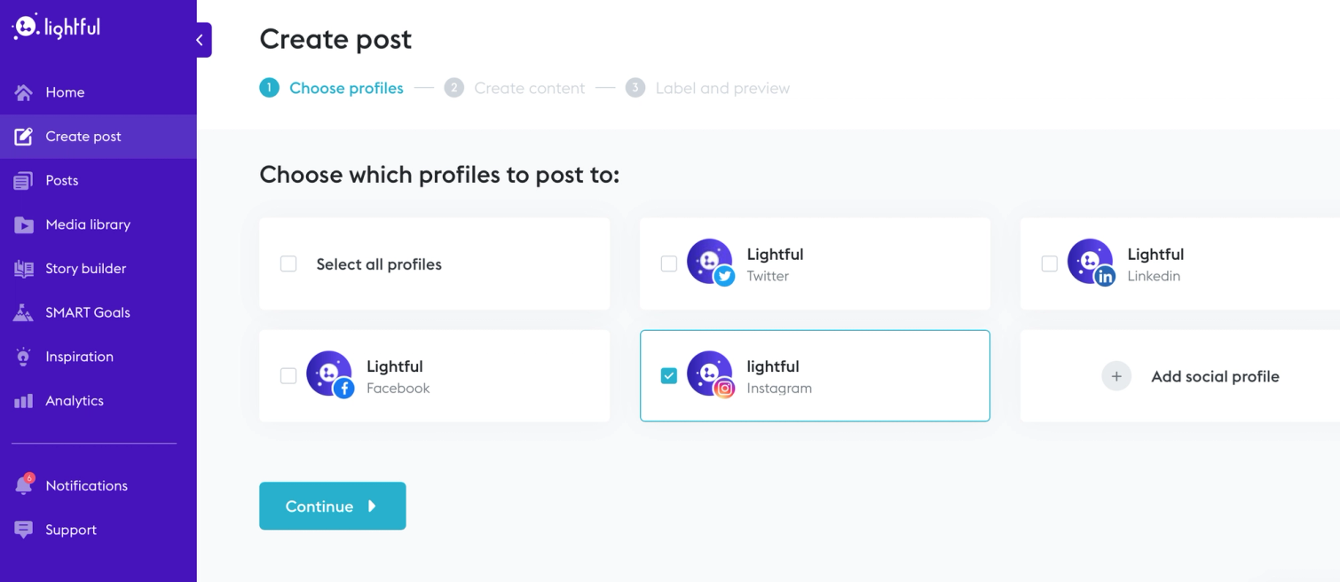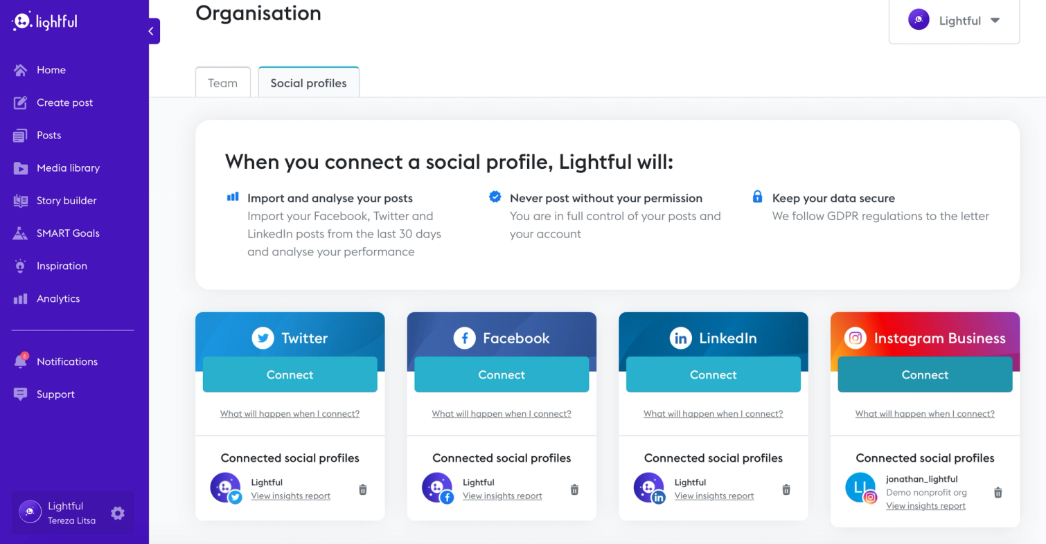 Log in or sign up to Lightful (free for two social channels and additional plans for more users and channels)