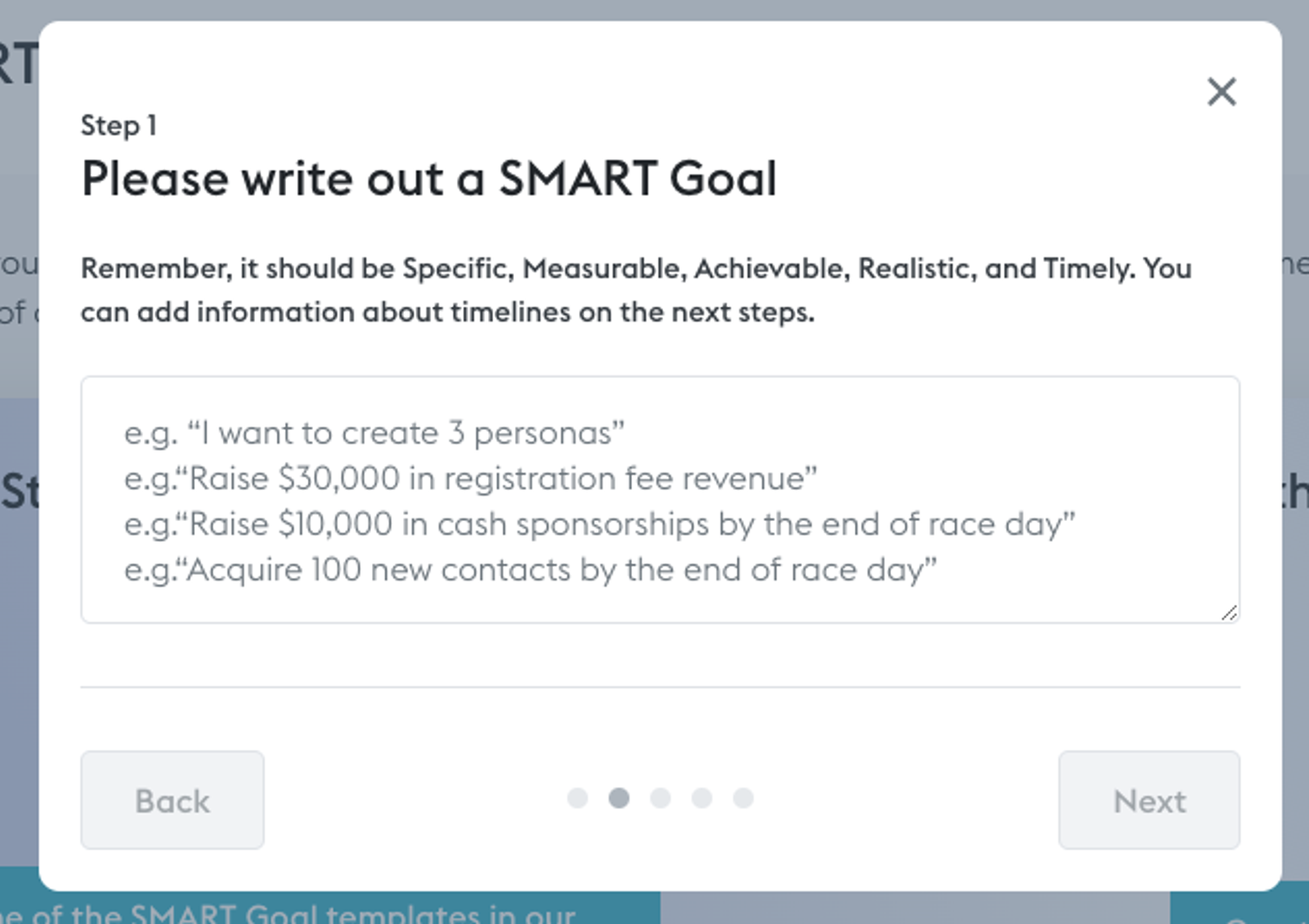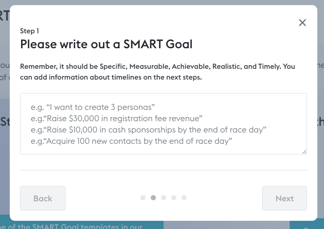 Once you’re ready to start the process, you will have access to a text field where you can write your SMART goals in every detail.