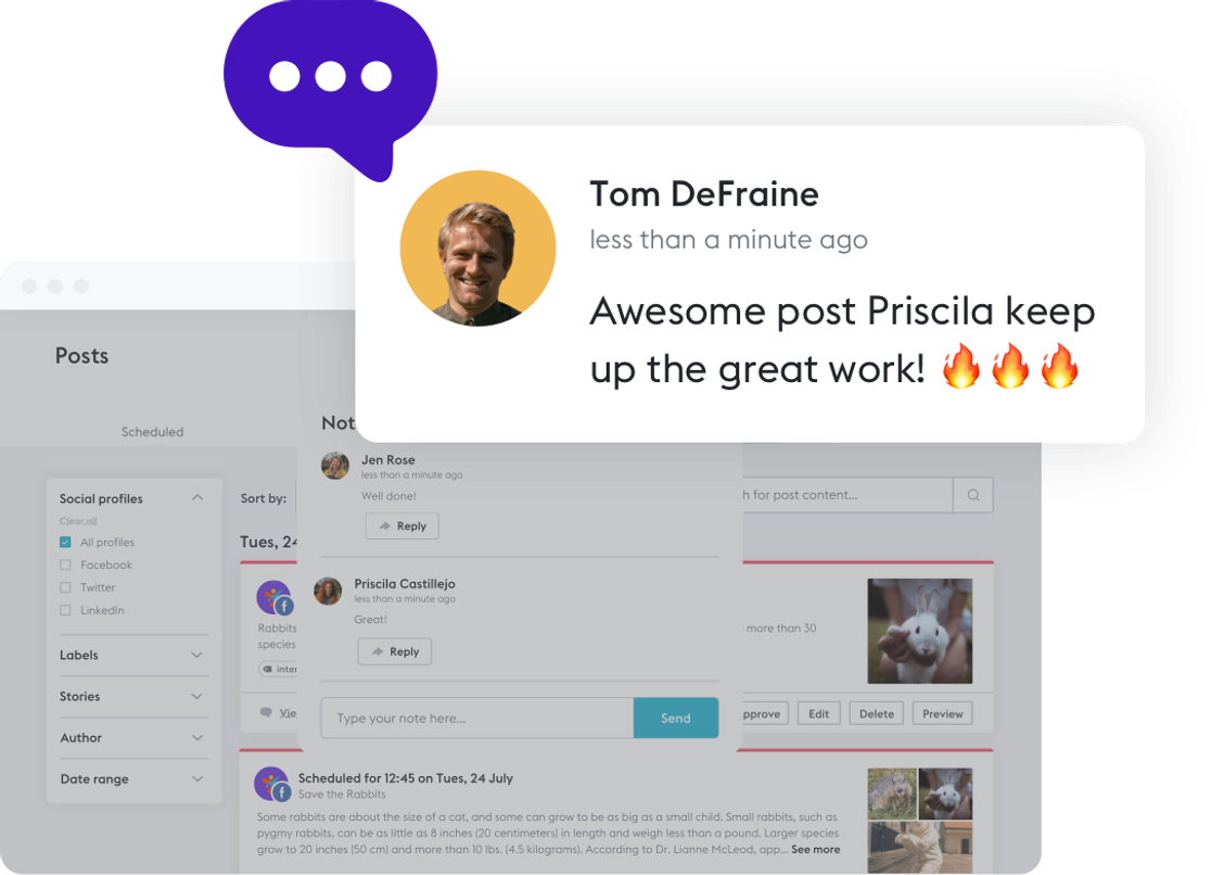Gather content ideas from your volunteers, interns, team members and trustees. Give different permissions to your team so that you can be sure your posts are always on message and on-brand.